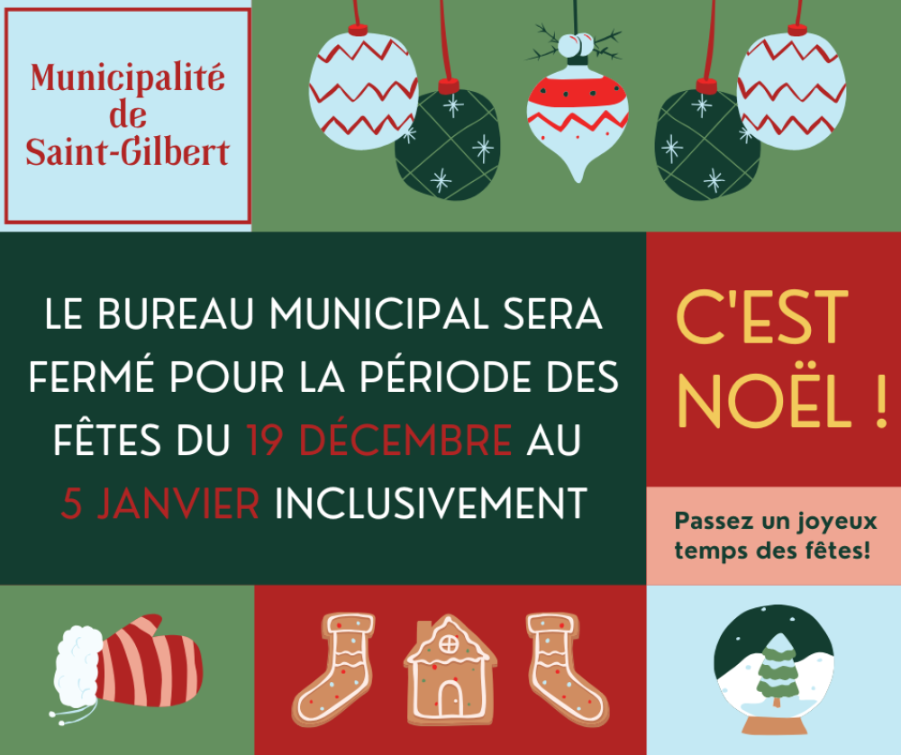 Le bureau municipal sera fermé du vendredi 19 décembre au lundi 5 janvier inclusivement.